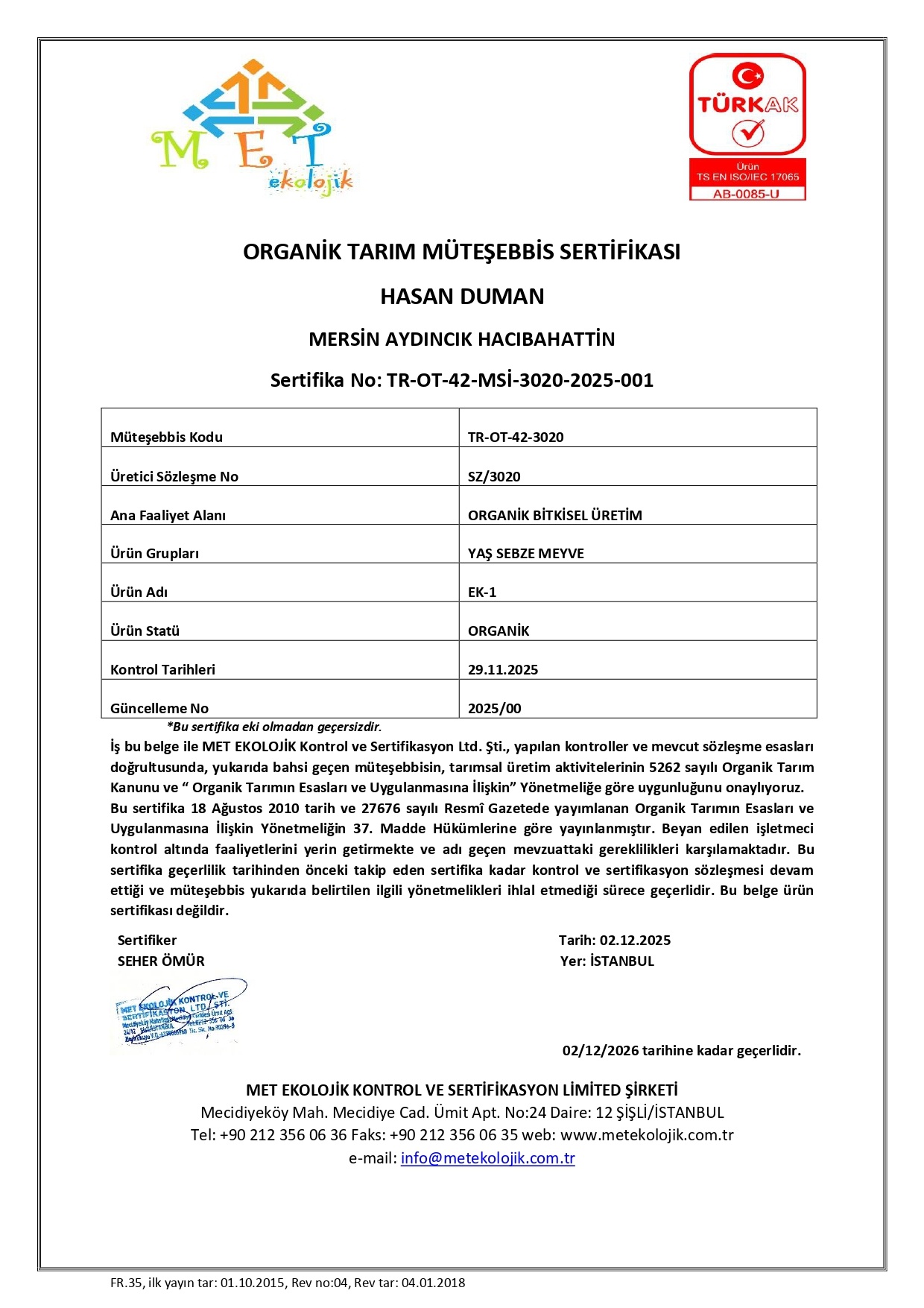 Su ve lif yönünden zengin, bir o kadar da düşük kalorili hıyarlar, salatalara, cacıklara çok yakışmanın yanında, kahvaltılarda domatesin yanında, bir de hafif ve doyurucu bir lezzet olarak ara öğünlerde çok iyi bir alternatiftir. Hasan Duman Çiftliği'nde üretilen organik hıyarlar sofralarınızın lezzetli tamamlayıcısı olmak için sizleri bekliyor.