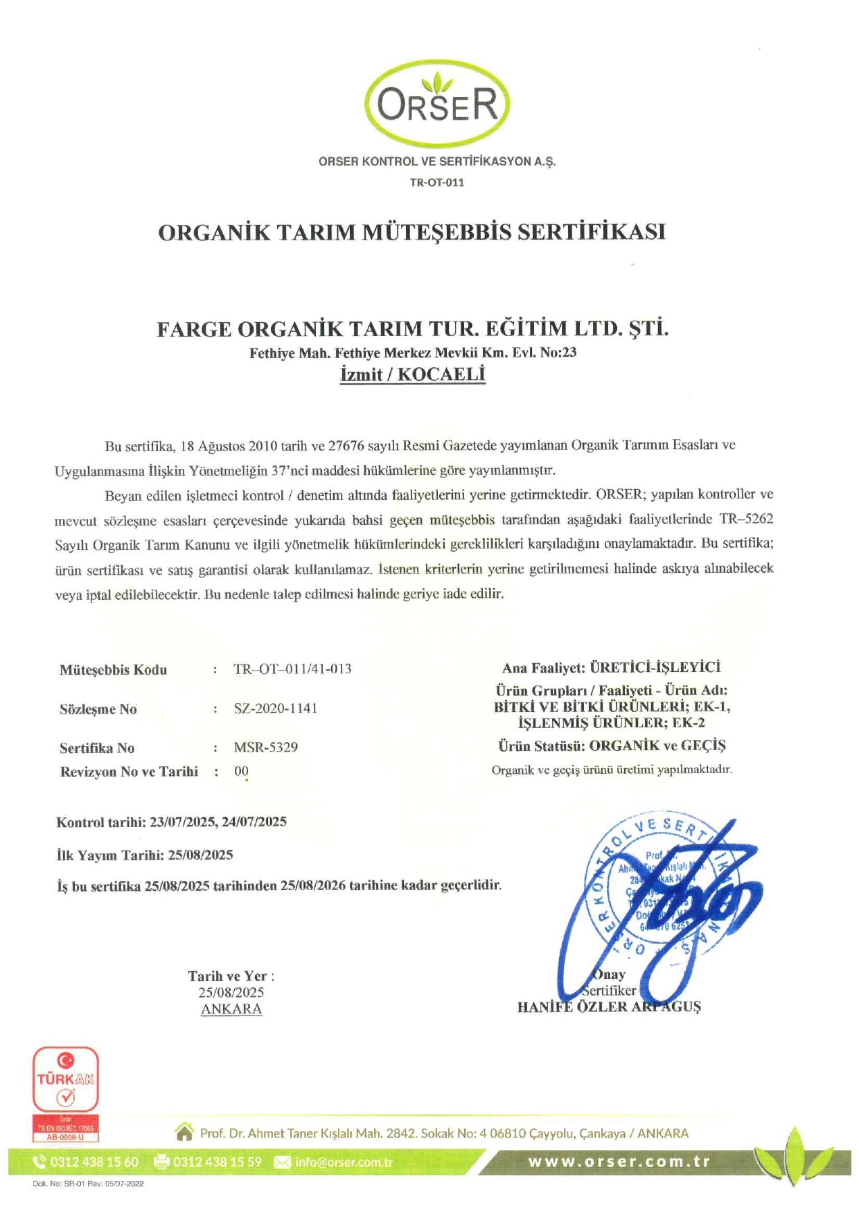 Organik meyve ve sebzelerde öncelikli olarak dikkate aldığımız kriterler, organik yetiştirilme tekniklerine bağlı kalınmış ve koku, aroma, tat bakımından zengin olmasıdır. Dış kabuğunda irili ufaklı olan zararsız lekelenmeler bulunmak ile beraber, yeşillik ürünlerinde özellikle kış mevsiminde meydana gelen gece - gündüz farkından dolayı ürün yapraklarında yanma ve zedelenme olabilir. Organik meyve ve sebzeleri sık aralıklarla satın alıp, hızlı tüketmenizi tavsiye ederiz.
